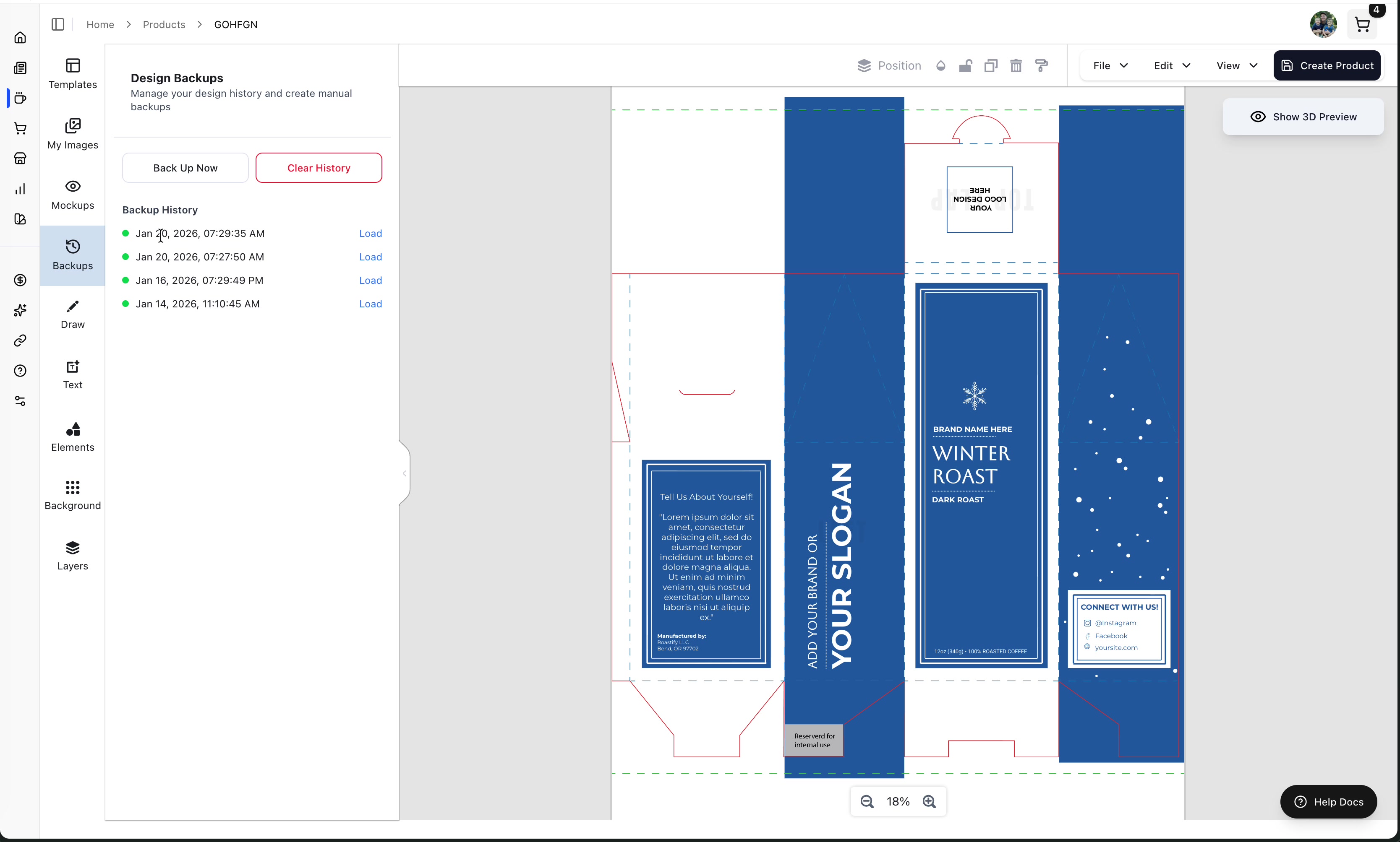 The Design Studio automatically creates backups as you work. You can access these from the Backups tab in the left sidebar.
